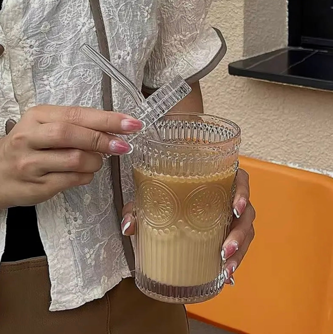 Add a touch of vintage charm to your drinks with these aesthetic Sunflower Glasses. Featuring a delicate retro flower design, each 360ml glass comes with a matching lid and straw – perfect for iced coffee, juice, or any refreshing beverage. With lid and straw.
