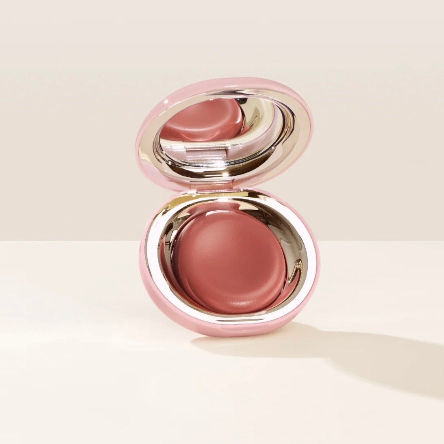 To blend our cream blush formula, use a dense brush or your fingertips to dab it onto the apples of your cheeks until it looks seamless. Apply more layers as desired.